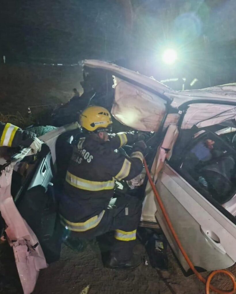 De acordo com a Polícia Militar, o condutor da Hilux atingiu inicialmente o veículo de passeio. Com o impacto, o carro perdeu o controle, invadiu a pista contrária e bateu de frente contra a carreta.