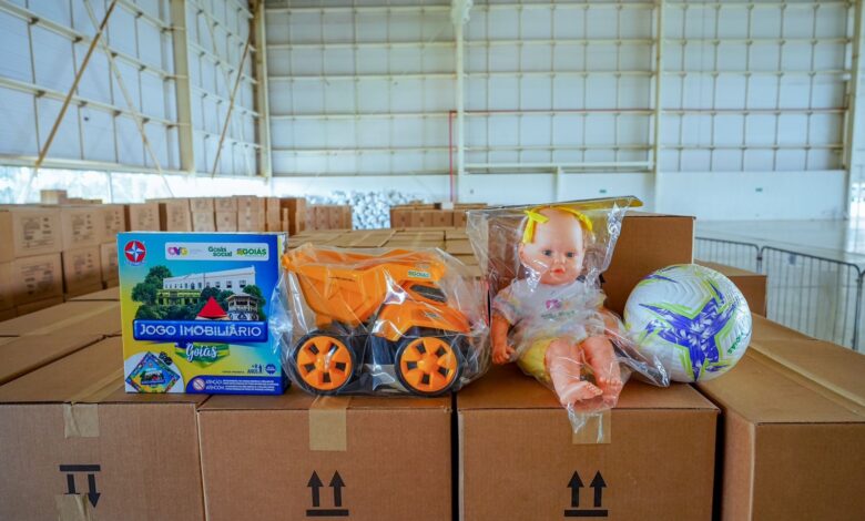 Entre os itens entregues neste ano estão bonecas, carrinhos que se transformam em patrola, bolas de futebol e vôlei, kits de panelinha e o novo jogo imobiliário temático, personalizado com pontos turísticos de Goiás.