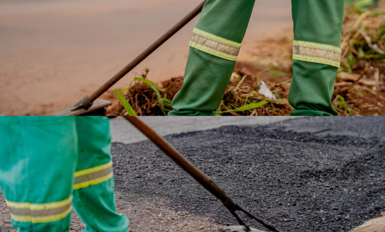 As equipes executam serviços de roçagem mecanizada, capina, poda de grama, manutenção asfáltica, limpeza de bocas-de-lobo e operações de tapa-buraco.